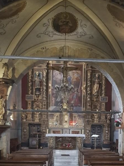 I let those sketches gestate for ten days, confident that the creative subconscious would do its thing while I was enjoying the mountains in Val d’Isère. This morning we visited the beautiful church of St Bernard de Menthon, a baroque haven with the most beautiful altar backdrop with ornate gilt decoration, reminiscent of the holy heart of an Orthodox church.